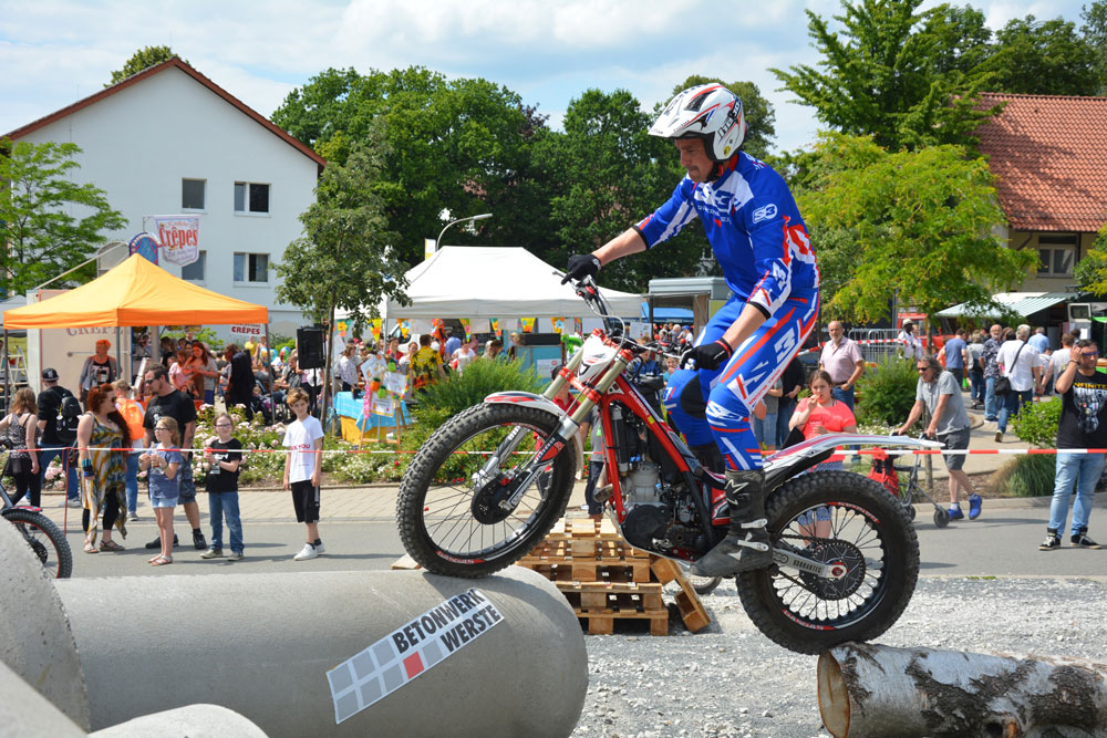 Bereits seit 20 Jahren (!), treffen sich weit über 100 Mitglieder der „Biker-Union“ mit Motorrädern, Gespannen und Trikes, beim traditionellen Jahresfest der Diakonischen Stiftung „Wittekindshof“ in Bad Oeynhausen, um den Bewohnern mit Ausfahrten eine Freude zu bereiten. Bei bestem Wetter fanden sich auch am 16. Juni 2019, fast 5000 Familienangehörige, Zuschauer und Gäste auf dem Einrichtungsgelände ein, um an den zahlreichen Angeboten und Vorführungen des Festprogrammes teilzuhaben (Live-Musik, Geschicklichkeitsspiele, Kinderschminken, …), zu denen nun auch eine Trialvorführung durch SportlerInnen der Vereine aus dem ADAC Ostwestfalen-Lippe gehören sollte.